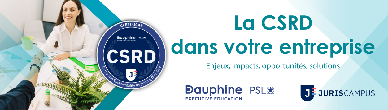 La formation proposée par l’Université Paris Dauphine – PSL et l’Institut Juriscampus a précisément pour finalité de permettre aux acteurs des diverses fonctions de l’entreprise impliquées dans cette démarche de reporting relative à la durabilité, de maîtriser les outils et les enjeux leur permettant de satisfaire à leurs nouvelles obligations.